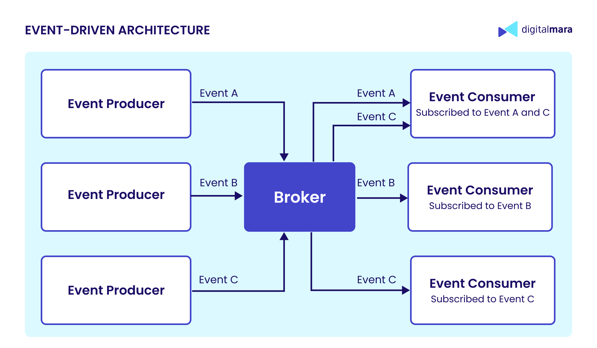 - Agile and cost-effective — Event-driven microservices use resources only when needed, helping save on infrastructure costs.