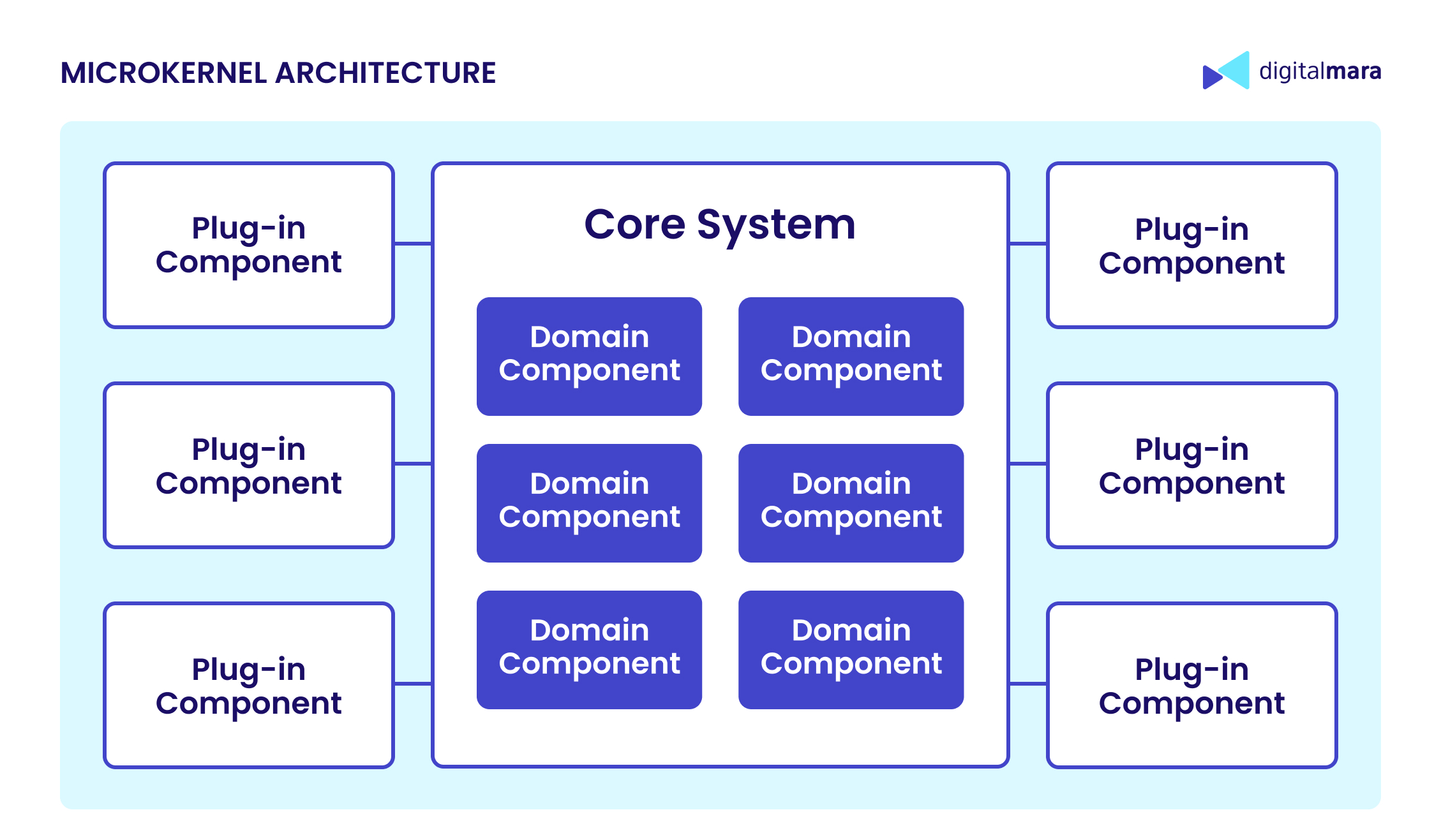 In software systems, the microkernel architecture is built around a compact and stable core responsible for essential tasks like coordination and plugin management, while all additional features are delivered through independent modules, or plugins. This design follows a modular structure where each plugin operates in isolation, without shared memory or direct communication with other modules. Everything goes through the core. By keeping the kernel clean and allowing features to plug in as needed, teams can extend or modify functionality without touching the base system, making it easier to scale, maintain, and adapt over time.