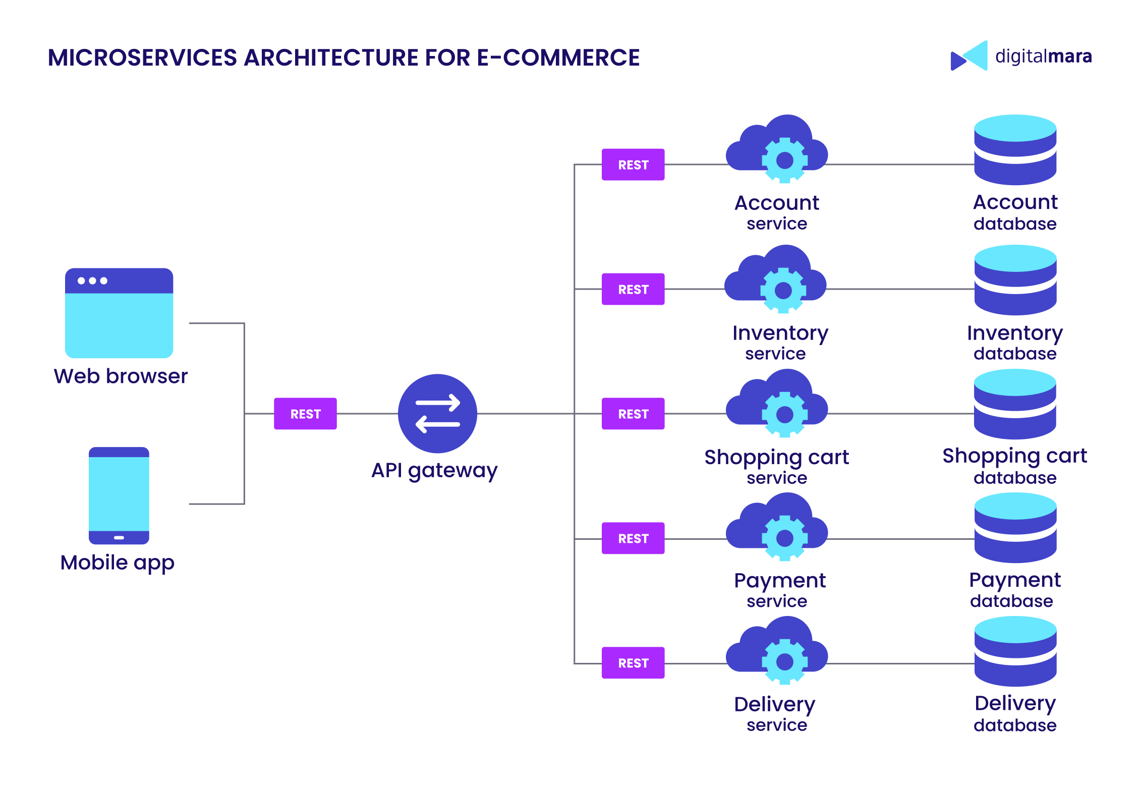 Here’s how microservices architecture can look in a marketplace setup: