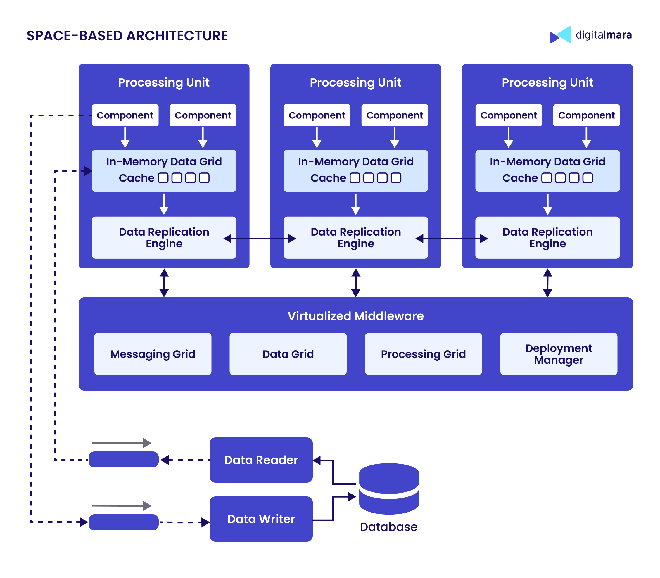 SBA works by spreading the software system across a data grid — the “space” — where independent processing units live. Each unit handles its own logic and keeps a local chunk of data in memory. This reduces load on a central database and delivers much faster response times. It fits perfectly with cloud-native environments, where stateless, elastic systems are the norm.
